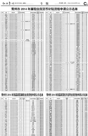 青州市2014年廉租住房货币补贴资格申请公示名单