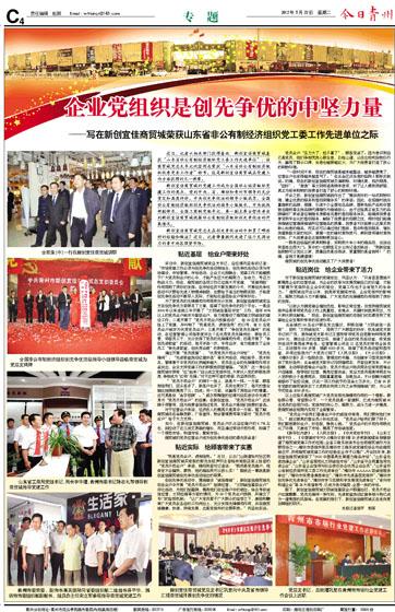 写在新创宜佳商贸城荣获山东省非公有制经济组织党工委工作先进单位之际