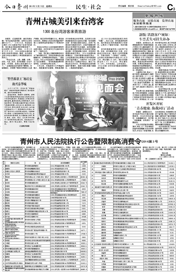 青州市人民法院执行公告暨限制高消费令(2014)第3号