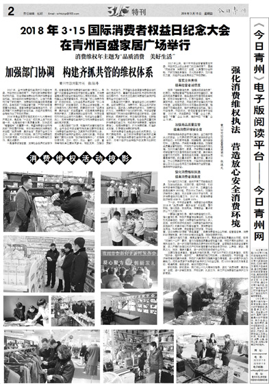 2018年3·15国际消费者权益日纪念大会在青州百盛家居广场举行