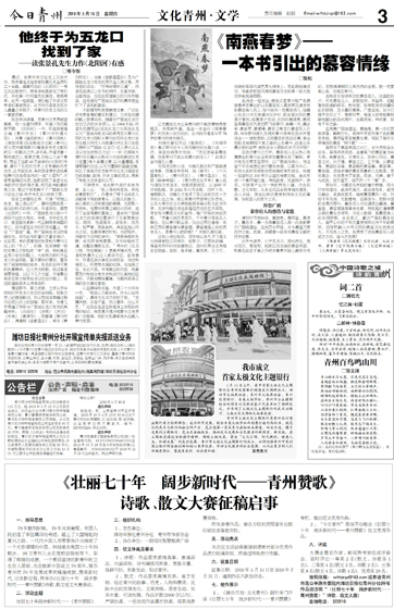 《壮丽七十年 阔步新时代——青州赞歌》诗歌、散文大赛征稿启事