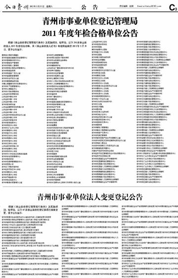 青州市事业单位登记管理局2011年度年检合格单位公告