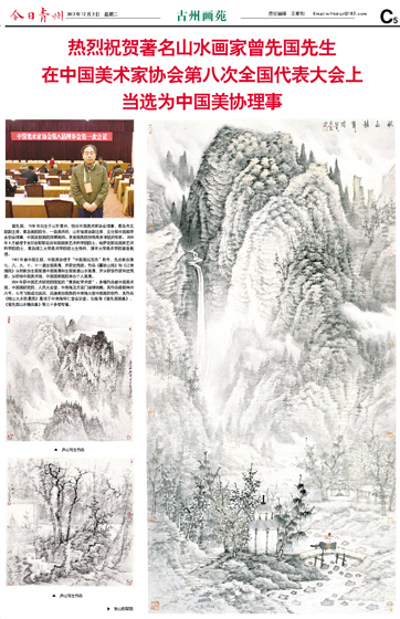 热烈祝贺著名山水画家曾先国先生在中国美术家协会第八次全国代表大会上当选为中国美协理事
