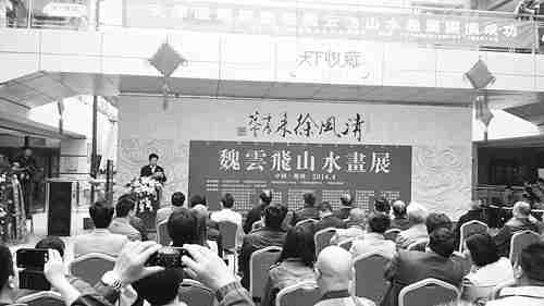 天津美院副教授魏云飞画展于4月12日在河南郑州“天下收藏”画廊开幕。河南省文联主席、河南省美协主席、画家马国强参加,并发表了热情洋溢的讲话。 来自山东、河南、天津、河北等地的书画经营者500余人参加了画展。 本报特约记者吴勇摄