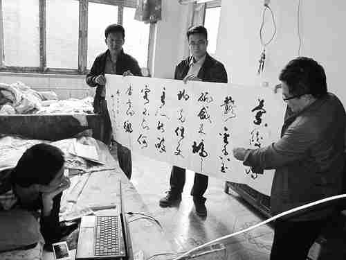 4月19日,陕西省著名书法家薛伯青来“青州泰丰画古玩城”举行书法慈善义卖活动,在活动现场,你50元,我100元,他200元......有的市民不图回报,把爱心款悄悄放到募捐箱里。短短一上午时间,就募集到书法义卖款1500元,把1500元善款和薛伯青专门为救助张学杰创作的两幅价值不菲的书法作品送到了张学杰的病床前。 曹健强 沈志海摄