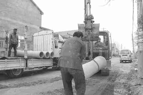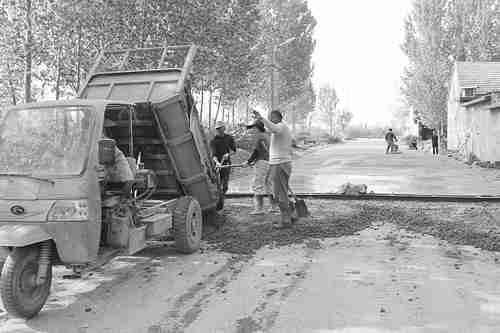 为加快村级公路网化建设工作进度,弥河镇进一步明确责任,与各管区、村层层签订《村级公路网化建设目标责任书》,加强组织协调力度,强化一线办公,积极搞好现场服务。同时,配齐配强管理和工程技术人员,加大人力、机械投入,加班加点推进道路建设。图为在该镇贾庙村,施工工人正在紧张施工。 刘志涛 王福涛 刘娜摄