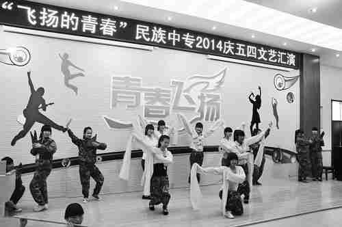 五四青年节期间,民族中专师生排演了一场主题为“青春飞扬”的文艺汇演,节目有歌颂祖国的歌伴舞《我属于你祖国》、独唱《祖国万岁》、《我家在中国》、《报答》和歌颂中华民族传统美德的合唱《大学精神》、《相亲相爱的一家人》等二十几个节目,其中学校舞蹈队表演的《衡王宴乐》还是参加的益都街道社区文化中心排演的《千年史画》的一部分,古装舞女、笙、笛构成的组图,展示了大明王朝兴盛时期青州作为大国重镇的礼乐活动场景,增强了青年学生的爱国爱乡感情。 史继刚 杨杰摄