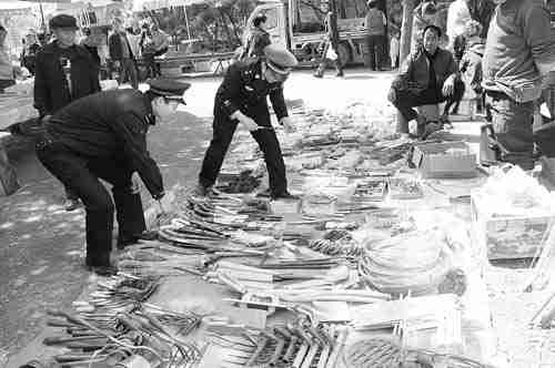 为进一步加强社会面治安管控,消除治安隐患,近日,王坟派出所集中开展严厉打击涉枪涉爆和收缴管制刀具专项行动。 李传林摄