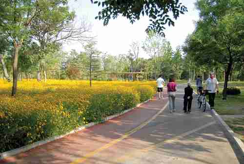 盛夏时节,青州植物园里各种鲜花相继开放,每到清晨和傍晚,人们三五成群来到植物园游玩,有的跑步、有的骑车、有的拍照留念……人们陶醉在美丽的大自然中。近年来,青州市立足建设生态良好、环境优美的宜居宜业宜游城市,多管齐下,使生态越来越好、环境越来越美,当地居民幸福感和满意度不断提升。 记者曹健强摄