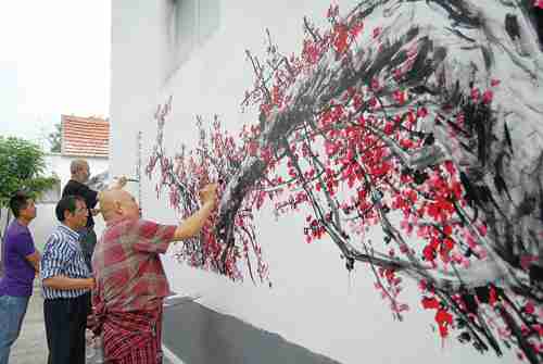 5月25日,王府街道邀请青州市十余名书画家到井塘古村进行墙体作画,他们围绕四德工程、以孝治村、生态环保、美丽乡村、文明新风等相关内容,进行创意创作,集中展现了新农村、新生活,凝聚社会正能量,倡导了文明新风尚。 记 者曹健强 通讯员孙森成摄