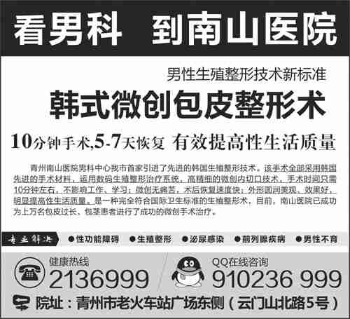 青州南山医院男科专家曹春生主任说,手术切除过长的包皮,是目前最简单、最有效的办法。如今男性生殖疾病治疗技术已经很成熟。韩式微创包皮整形术是一种很好的治疗包皮包茎的疗法,它具有微创、无痛、术后不出血、恢复快等特点。