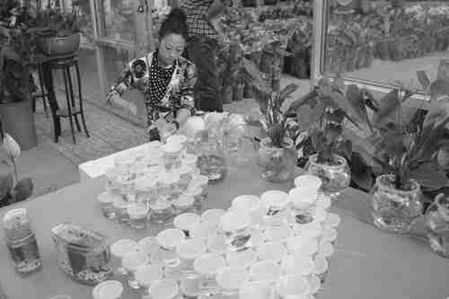走进黄楼街道花卉交易市场,除了忙碌热闹的看花买花景象,一些摊位前的“新玩意儿”吸引了众多人的眼球。只见商家买来了许多精致的玻璃、塑料容器,放上水和许多亮晶晶的石头装饰品,再配以部分水草等绿植,创造了一个适合小鱼儿生存的环境,不仅可以饲养小鱼儿,还能作为装饰品欣赏,一天能销售近百个,将花卉市场聚集起的人气发挥到了最大化。图为商家正在将小鱼儿放进容器中。 刘铠铭 赵振晖摄