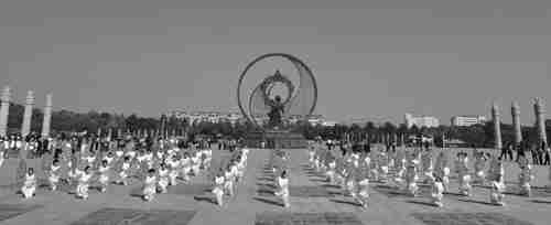 东夷文化标志园里的太极扇表演。