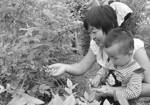 近日,青州市第二届蓝莓采摘节在弥河镇向阳蓝莓种植基地拉开序幕。在该基地的蓝莓种植园内,一粒粒饱满的紫黑色蓝莓挂满枝头,众多慕名前来的游客兴高采烈地品尝着诱人的蓝莓果。该种植基地负责人韩智会告诉笔者,蓝莓营养价值丰富,市场认可度高,经过几年的培育,该基地的蓝莓陆续进入盛果期,今年产量能达到15000斤到20000斤,纯收入预计能达到70万元。图为游客在采摘蓝莓。 刘志涛摄