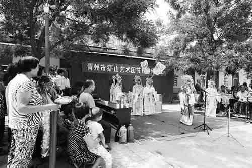 7月30日,邵庄镇峱山戏曲艺术团的爱心人士组成文艺小分队来到镇敬老院开展送戏下乡活动,赢得了老人们阵阵掌声。舞台上,演员们表演了京剧《贵妃醉酒》、吕剧选段《李二嫂改嫁》等群众喜闻乐见、耳熟能详的唱段,赢得了观众一片喝彩,丰富了老人们的业余文化生活。 庆滨 志海 相恩摄