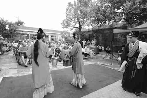 8月23日下午,山东省吕剧院的三十余名演职人员来到青州市圣水老年护理院,为在这里入住的老人们表演了《借年》、《李二嫂改嫁》等传统吕剧精彩唱段和笛子独奏、歌曲等群众喜闻乐见的文艺节目,受到老人们的热烈欢迎。 据悉,从今年7月起,山东省文化厅联合省财政厅、民政厅,以政府向社会力量购买服务的方式,为全省17市的部分儿童福利院、敬老院送演出150场。此次演出就是“山东省吕剧院进社会福利机构公益演出”的一部分。 沈志海摄