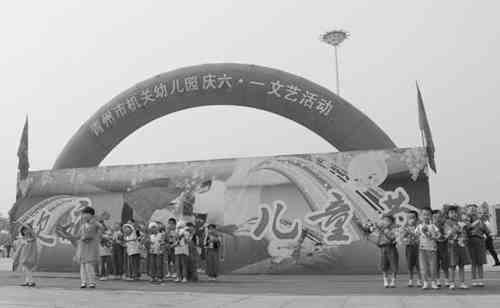 5月26日上午,东夷文化广场内彩旗招展,人头攒动。机关幼儿园的小朋友们身着节日服装,在老师和家长们的带领下,欢聚在一起,举行庆祝“六一”儿童节文艺节目演出活动。 郭庆滨 曾宪升摄