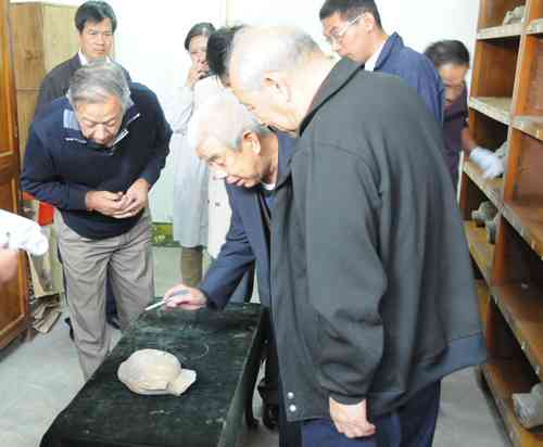 2011年10月,夏名采(中)与省文物鉴定委员会专家为博物馆文物定级