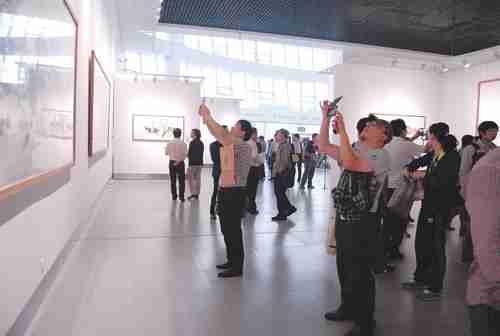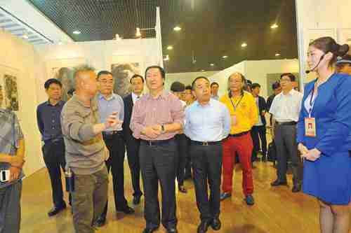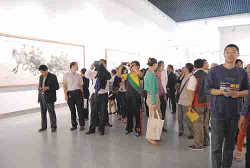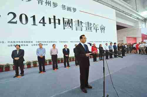 丹青妙笔绘盛世,翰墨飘香谱华章。在繁花似锦的金秋时节,91万青州人民迎来了一年一度最热闹的日子。9月28日上午,以“中国梦·青州梦·书画梦”为主题,集书画艺术展示、学术交流、艺术品交易为一体的国家级文化盛会——翰墨青州·2014中国书画年会盛大开幕。本届年会规模大、档次高、内容丰富、形式多样,广度、深度俱佳,亮点纷呈,是一次中国书画的大汇集、大展示。全国知名的书画艺术家、书画爱好者、收藏家、经营商从四面八方涌来,齐聚古城青州,共享盛事。 本报记者曹健强摄