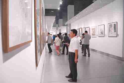 聚焦翰墨青州·2014中国书画年会 丹青妙笔绘盛世,翰墨飘香谱华章。在繁花似锦的金秋时节,91万青州人民迎来了一年一度最热闹的日子。9月28日上午,以“中国梦·青州梦·书画梦”为主题,集书画艺术展示、学术交流、艺术品交易为一体的国家级文化盛会——翰墨青州·2014中国书画年会盛大开幕。本届年会规模大、档次高、内容丰富、形式多样,广度、深度俱佳,亮点纷呈,是一次中国书画的大汇集、大展示。全国知名的书画艺术家、书画爱好者、收藏家、经营商从四面八方涌来,齐聚古城青州,共享盛事。 本报记者曹健强摄