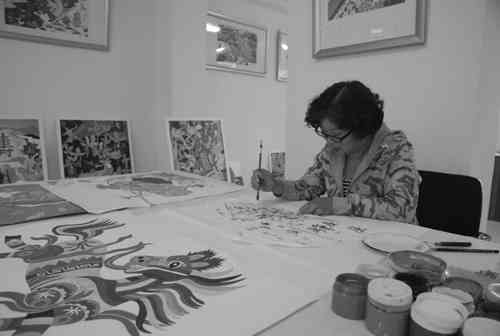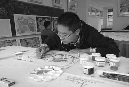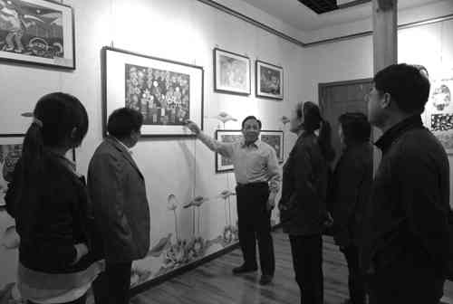 本报讯 (记者张平 曹健强)“以前没注意,现在才发现,原来生活中到处都有农民画的影子,锅碗瓢盆上有,衣柜、窗帘上有,甚至是鞋垫上也有。”10月7日上午,在青州农民画市场,来自潍坊学院的学生小刘等人在兴致勃勃的参观,并不时发出惊叹声。