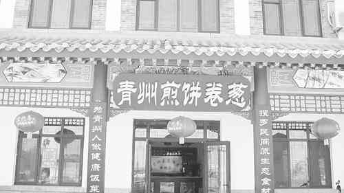 近日,位于青州石坊路的传统名吃青州煎饼卷葱酒店开业迎宾。煎饼卷大葱是山东省传统名吃,吃的时候,将又圆又薄的一大张煎饼,放上一棵洗净的大葱,沾上大酱,然后顺势一卷即可。传统名吃一开张,许多游客便纷纷这里品尝名师亲手烙的煎饼,深到消费者的爱戴。 记者郭庆滨摄