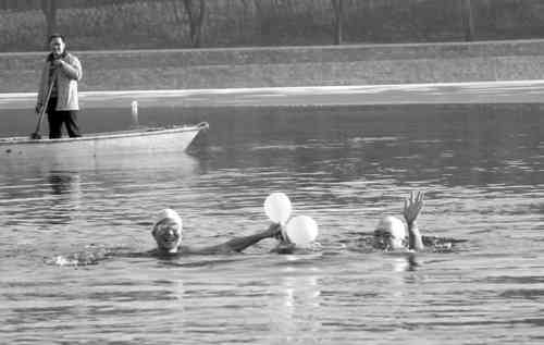 运动快乐迎新年。2015年1月1日,新年第一天,青州市近百名冬泳爱好者齐聚南阳河水库,参加了水中捉气球、接力赛、救生演练、抓鸭子等精彩的活动,用积极健康的方式迎接新年。 记者曹健强摄