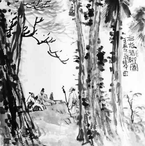 三友闲聊图(69x69cm)