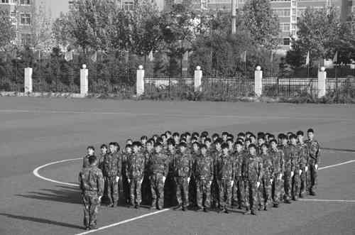 每天的早操、上下午的上课、放学,晚自习下课,一日三餐,学生均集合,一日共七次。要求动作迅速,队伍肃静,队列整齐划一,精神面貌高昂饱满。以部队的标准和要求,进行军营的“洗礼”,更是心灵的触动和情感的升华。
