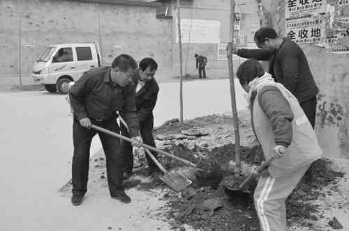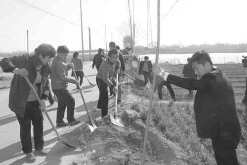 经济开发区抢抓当前植树绿化的有利时机,早动员、早部署、早行动,不断加大人力、机械投入,并落实奖补资金600万元,全力推进网化道路、村内大街等绿化重点工程进度,确保4月上旬全部完成3.2万株高大乔木、18万平方米的绿化任务。图为开发区张家村干部群众在栽植法桐。 田玉明摄