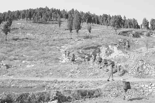 入春以来,庙子镇早安排、早部署,积极采取有效途径,在镇域范围内开展了一系列护林防火演练,有效提升了森林火灾应急处置能力,确保森林防火工作扎实、高效、有序。目前已开展火灾应急演练10余次,专项巡查20余次,巡查面积达3000多亩;购置风力灭火机25个,水泵式灭火机7个,护林防火专用车2辆,配备护林员、防火员160名。图为该镇森林防火消防队成员在朱崖村东山开展护林防火应急演练。 尹智摄