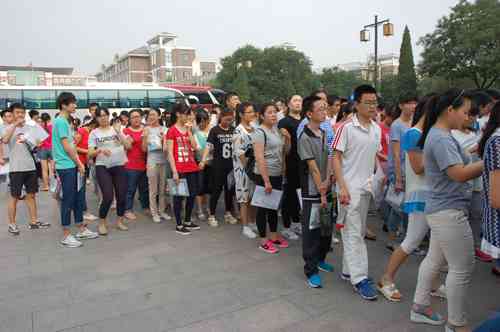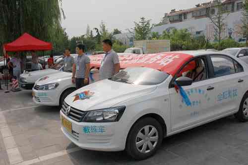 图①为考生走进考场。图②为金旺驾校的爱心助考车队。 记者曹健强摄