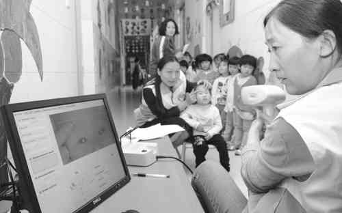 为让孩子们掌握正确的用眼方法,养成从小爱护眼睛的好习惯,近期,潍坊市益都中心医院组织实施了“六一”儿童节及“爱眼日”“关爱儿童眼健康”免费筛查视力活动。截至目前,已走进15个幼儿园,为1800余名小朋友进行了免费视力筛查并建立了健康档案,此项活动受到了幼儿老师和家长的一致好评。图为视力筛查现场。 王行摄