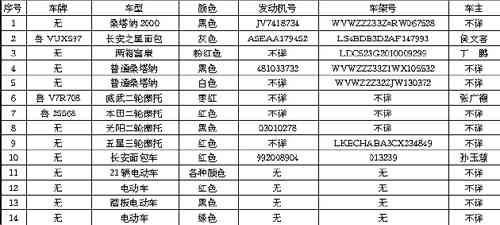 青州市公安局自2015年1月至2015年6月期间,在办理各类案件过程中扣押下列车辆,现予以公告,请涉案车辆当事人自公告之日起六个月内持有关手续到青州市公安局后勤处财务科处理,逾期不处理的,公安机关将根据有关法律、法规、规定依法处理。 特此公告。 青州市公安局 二0一五年六月八日 附:涉案车辆基本情况: