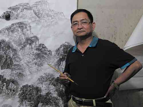 我也有过一次难忘的太行山之游,2000年随龙瑞为首的山水画家群到距林县不很远的叫郭亮的山村去写生,郭亮村位于太行深山最高处,山高谷深,难以到达,但景致绝美,当地百姓竟沿着悬崖绝壁以人工打出隧道,从山下登向山顶,走在这条相当宽阔的隧道公路内,真的要由衷地赞叹太行人的精神。太行山自河北、山西直到河南境内,而河南位置偏南,气候更暖,植被更丰满,风光无限,正是山水画家取之不尽的天然画本。秦保家用两年多的时间,殚精竭虑、废寝忘食的投入,精心创作出《林虑揽胜图》百米长卷,为山川写照,为河山立传,不仅主题立意好,且能做到布局谋篇之中意境经营,情景开合,虚实相生,笔墨酣畅。几十年来生活在太行山下的画家,熟悉那里的山川草木,四季景观,晨烟暮霭,民谚乡音,是取之不尽的创作源泉,太行山就在画家的胸臆里。虽然巨大的长卷工作量很大,据画家说,画得十分顺手,山川溪瀑笔下自然涌出。像他这样的创作状态在许多画家那里也是存在的,著名的有陆俨少先生,据说都是腹稿已成,下笔生发,意随笔进,树石云水,须臾而成。秦保家创作如此长卷大轴,凭借其多年反复的生活体验,万千丘壑早已成熟在胸,凭借画面需要,随手安排。石涛上人说“搜尽奇峰打草稿”,其道理就在“山川使予代山川而言也,山川脱胎于予也,予脱胎于山川也”,就是说,画家和山川的关系已经是相互融合,相互存在的密不可分的关系。