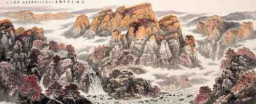 长卷形式古已有之,手卷和长卷的形势是古代画家智慧的独特创造,画家纪游,感慨兴叹,一一写于画卷,随时展观,称为“卧游”,是中国山水画不同于西方风景画的艺术。当代中国画家继承而光大之,以现代人的胸襟理想,以更广阔的视野,更宏大的画幅,表现工业化、信息化时代人和大自然更为和谐贴近的共生关系,在秦保家的这件作品里有所体现。就技法的角度来讲,秦保家的笔墨功力相当扎实,是数十年实践所积累,得山川之助,笔底氤氲天然流露,丘壑浑厚草木华滋,十分难得。