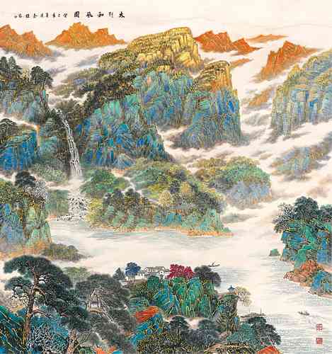 秦保家生活工作的安阳,是中华文化曙光初升之地,20世纪初安阳殷墟的发掘,揭开了远古历史的幕帐,甲骨文字的发现和研究更接近了中国文字形成的源头,对于中国书画审美历史的研究,有了新的证据。历史赋予了中州大地深厚的承载和积淀,它的文脉绵延不绝。太行山脉的东西两麓,黄河流域上下是中华先民生聚之地,更是中华文化发扬光大之地。就中国画艺术来讲,太行山就是山水画的摇篮。太行山迤逦千里,巍峨壮观,岭巗插天,深涧流泉,松柏蔽日,时闻猿啼。五代时画家荆浩避乱隐居太行,居于洪谷,以自然为师,啸傲游览,偶至大岩谷中见松石奇景,遂运笔写生画松“凡数万本”,成就伟大。山水画发源很早,到荆浩始臻完善,是称山水画集大成者,《四库全书提要》称之“为范宽辈之祖”。至今荆浩墓庐仍在太行山中,供画家们顶礼瞻仰。宋代是山水画前期最鼎盛时代,出现了李成、范宽、郭熙等大家,当时宋都汴梁即今开封,是当时的政治文化中心,更是画家们集中之地。此时期山水画气势宏阔,深厚雄博,山体巍峨,大开大合,显然是太行山这样的宏大景观给与画家们的影响更多。太行山在近代以来,更是中国人民坚贞不屈的民族精神的象征,抗日战争期间中华健儿在这号称中华脊梁的丛山中进行了无数可歌可泣的浴血战斗,一曲《我们在太行山上》传唱至今。山区人民更是勤劳奋斗,“红旗渠”的修建,是太行人民改造自然的艰苦卓绝精神的体现。秦保家的太行山长卷,就是这种“太行精神”的一个缩影。
