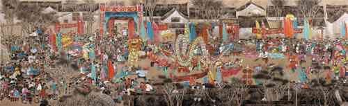 以山西朔县出土2.8万年前最早的遗存到岩画、现陶绘、壁画、帛画、砖画、再到西画东渐、中西合璧。浩繁画史中涌现出了不计其数的画家,然而能入画史者寥寥,他们之中又都有独特的自体,不是因循守旧,在前人体格上规规效法。青年画家沈克明以他饱含乡土气息的风俗画卷,似春风带着泥土的香气拂面吹来,使人仿佛又回到孩童时代那纯净而美好的记忆空间。