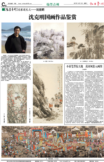 沈克明就是在深厚的传统功底上,以天地为师,以家乡养育的故土亲人为师。所以他按自己的画路去写,能发挥的淋漓尽致,从自己的路子发展、独树一帜,终将在画坛有所建树。“为画而生活则画死,为生活而画则画活。当有生活而求画,不当欲画则而讨生活。克明年轻正值创作的黄金时期,艺术之路还很艰苦漫长,确信他今后还会有更多、更好的作品出现。我作为同乡人在期待着。