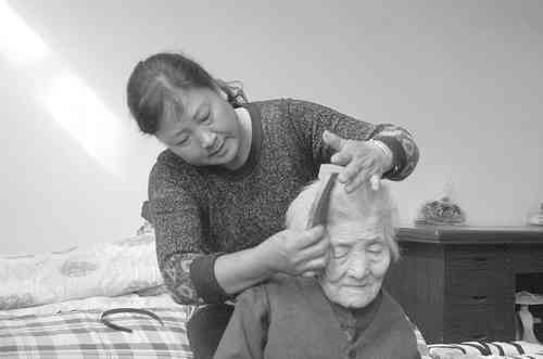 周桂琴在为婆婆梳头 记者曹健强摄