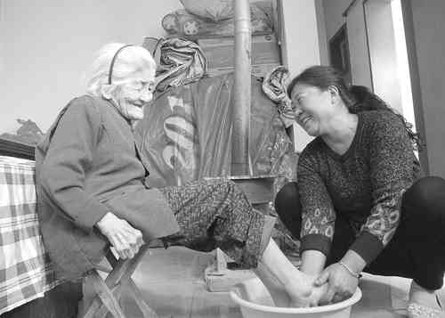 周桂琴天天为婆婆洗脚 记者曹健强摄