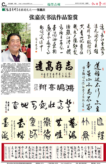 张嘉庆,字敏斋,1947年生,大学文化。现为寿光市书法家协会主席,山东省书法家协会会员、中国硬笔书法家协会理事、中国书画家联谊会组联处副主任、中国榜书家协会山东省分会副主席、中华牡丹书画院常务副院长、中国老年书画研究会会员。