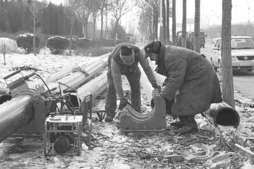 近年来,随着城市发展规模不断扩大,青州市政公用消防栓建设相对滞后,数量相对不足。为满足城市消防需要,近日,青州市建设局、市消防大队、晖泽水务等部门全面启动了城市市政公用消防栓建设、维修等工程。其中,晖泽水务拿出专门力量,在消防栓盲区增设新的消防栓,对老化、损坏的消防栓进行更新、维修,力争在年底完成市政府交给的任务。图为工作人员在青垦路进行管线安装施工。 郭斌摄