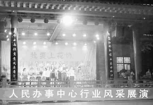 近日,青州市人民办事中心“行业风采”展演举行,歌伴舞、歌曲联唱、小品等多种展演形式充分展示了人民办事中心工作人员开拓进取、乐于奉献的精神风貌。 李建坤摄