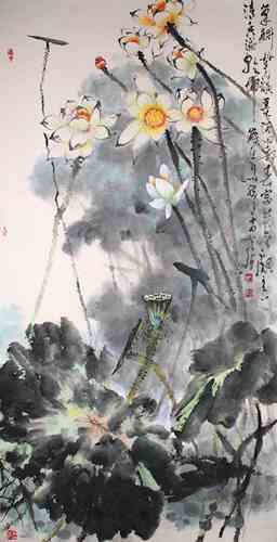 中年后尤爱画荷,笔下荷花清奇不凡、逸世出尘,将“气韵生动”表达得酣畅淋漓。正如周敦颐《爱莲说》中所写“出淤泥而不染,濯清涟而不妖。”青云先生借画抒情,将自己的处世态度融入画中,创作出自强不息,清丽其外,坚贞其中,多有禅意、禅音,不做媚世之态的“画中君子”形象。