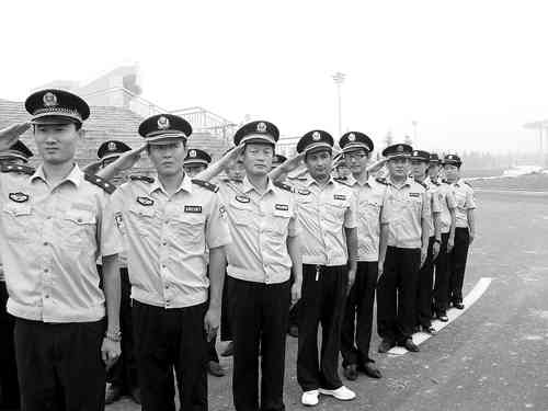 为树立公安队伍良好形象,进一步培养民警严整的警容风纪、过硬的纪律作风、良好的素质形象,近日,青州市黄楼派出所开展了警容风纪训练。图为训练现场。 王靖涵摄