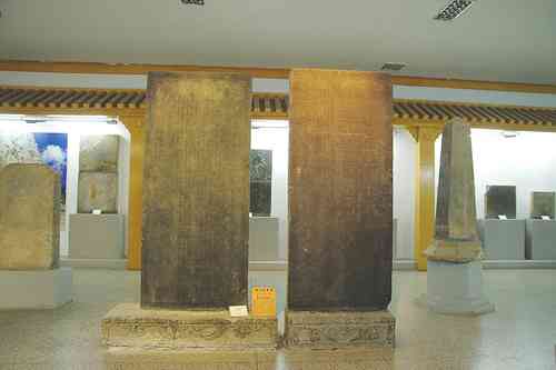 青州市博物馆的《石刻艺术陈列室》中,有两方花纹斑驳,字迹依稀可见的石碑,一方是《钞刻江苏镇江府建立青州驻防忠烈祠碑》(简称《忠烈碑》);一方是青州旗城为在镇江死难的烈士敕建昭忠祠碑(简称《显忠碑》)。这两方碑是道光二十二年(1842)第一次鸦片战争,青州驻防八旗兵参加镇江抗英战役的实物见证。碑文详细记载了当时的战斗情况,体现了青州兵反帝爱国勇于献身的精神。碑刻现为国家一级文物,是研究我国近代史的重要史料和进行爱国主义教育的宝贵遗产。