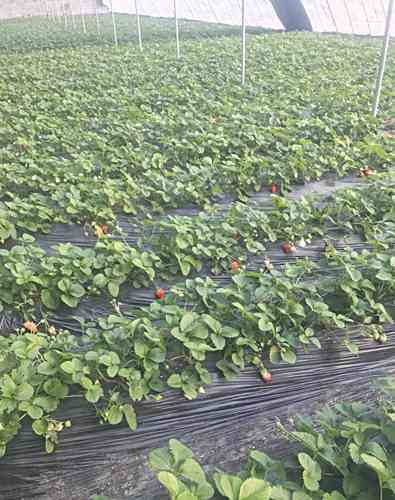 王府刘井草莓采摘基地的草莓都是纯天然绿色食品,它的生长过程严格按照有机农业的规范来操作,没有使用化学合成肥料以及各种激素、抗生素。大棚里的基土来自东北原始森林,是千百年存积的松针沃土;肥料用的是豆饼、花生饼和香油芝麻饼,一点化肥都没有用。