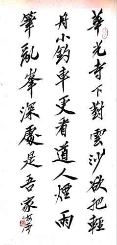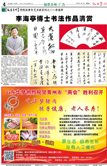李海亭 号海曲山人,1973年生,山东日照人。本科毕业于南京师范大学历史系,获史学学士学位,曾任南京师范大学校书法协会主席。2000年考入首都师范大学中国书法文化研究所,从事研究生学习,导师甘中流先生,同时受教于欧阳中石、刘守安、张同印等先生,2003年获文学(书法)硕士学位。2005年考入南开大学哲学系,主攻书画美学,导师薛富兴教授,博士论文《中国书法的普遍性和特殊性》获得答辩专家的一致好评,2008年毕业获哲学(美学)博士学位。