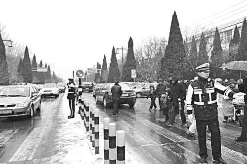 1月22日上午,青州市交警大队五中队的执勤交警正在师范附小门前路口指挥交通。 当日,我市出现大范围降雪天气,由于气温低,积雪溶化后造成路面湿滑,给群众出行带来了严重不便。为确保道路安全畅通,交警大队启动恶劣天气应急预案,积极部署警力,加大了路面管理力度,值勤民警,顶风冒雪,坚守岗位,一丝不苟,全力引导车辆减速慢行,全员上路保畅通。 本报记者 郭庆滨 通讯员 刘 洋摄